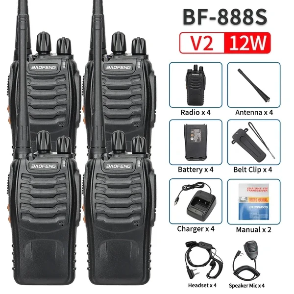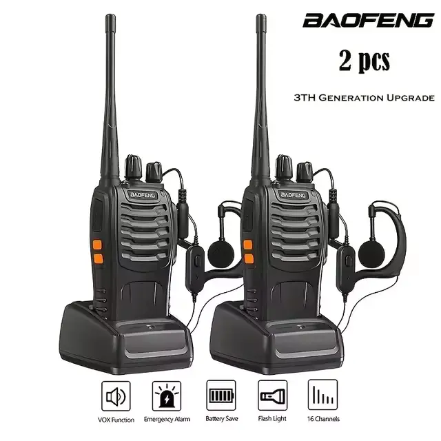 2PC-Baofeng BF-888S Walkie Talkies, Redio ya Mawasiliano ya Njia Mbili, Nguvu ya Kutosha ya Kuchaji USB